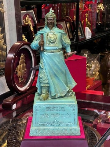Tượng Trần Hưng Đạo bằng đồng cao 50cm, patina xanh ngọc lục bích vân cổ (xử lý màu thủ công, độc quyền chỉ có tại Đồng Phong Thuỷ).