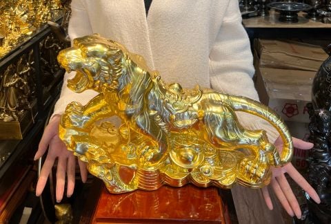 tượng hổ mạ vàng 24k núi đá phong thủy