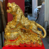 Quà tặng mạ vàng: Tượng hổ mạ vàng 24k ôm hũ tiền bằng đồng