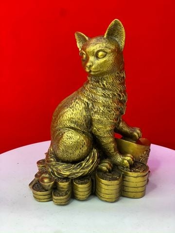 Tượng mèo phong thuỷ ngồi tiền 18cm