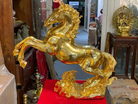 Tượng ngựa mạ vàng Cao 45cm dài 47cm rộng 16cm nặng 9kg bằng đồng dát vàng 24k