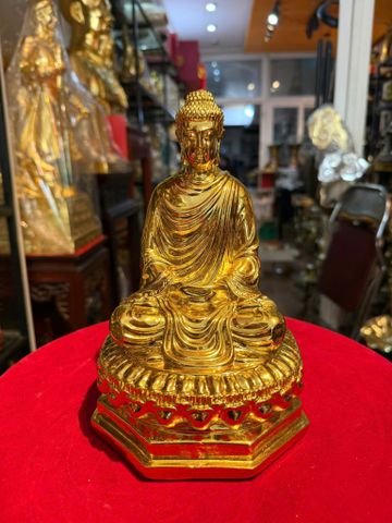 Tượng phật thích ca 22cm nặng 1,9kg bằng đồng dát vàng nano