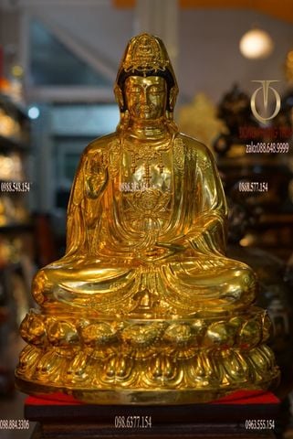 Tượng phật quan âm bằng đồng dát vàng tọa đài sen Cao 50cm nặng 18kg
