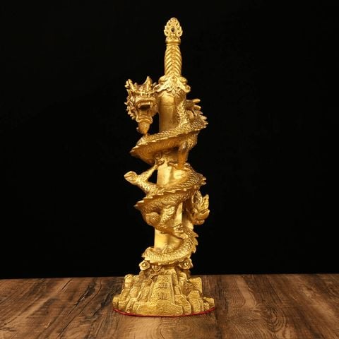 Tượng rồng cuốn kiếm đồng vàng nguyên chất