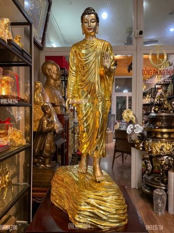 Tượng phật thích ca đứng dát vàng Cao 62 nặng 5.5 kg
