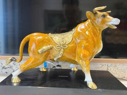 Quà tặng:Tượng trâu vàng bằng đồng dát vàng 24k